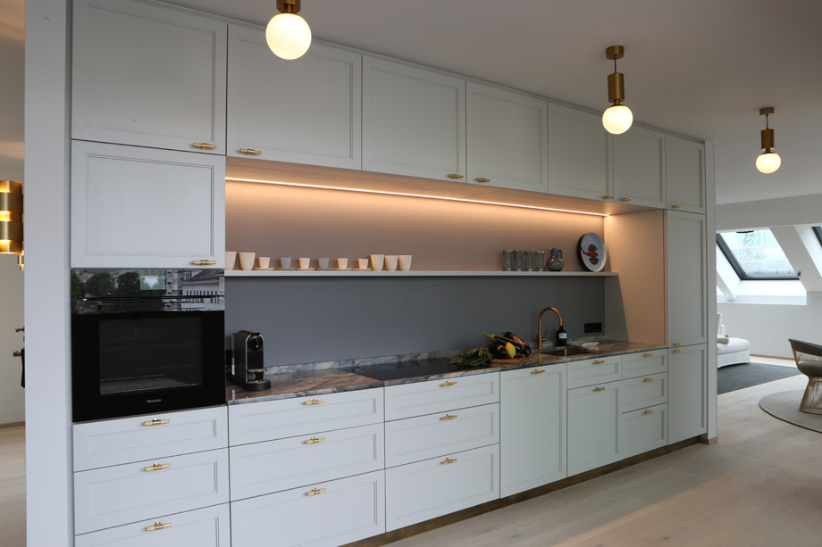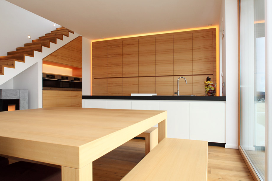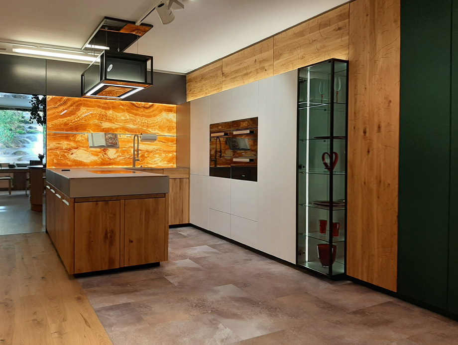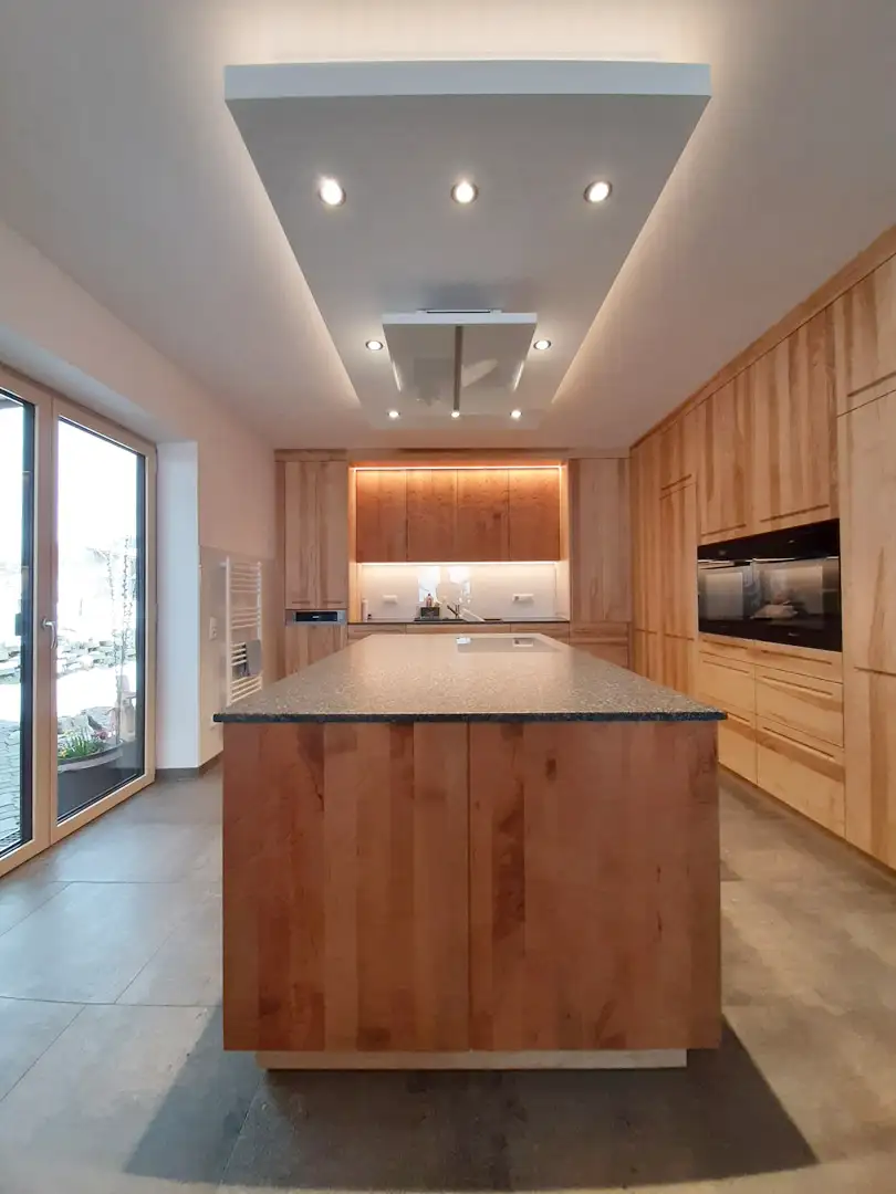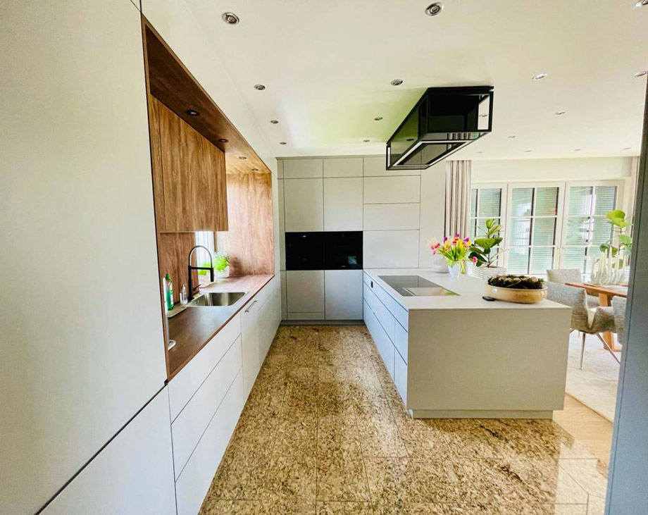 Unsere maßgefertigten Küchen verbinden Funktionalität mit ästhetischem Design und schaffen individuelle Wohlfühlräume zum Kochen und Leben.